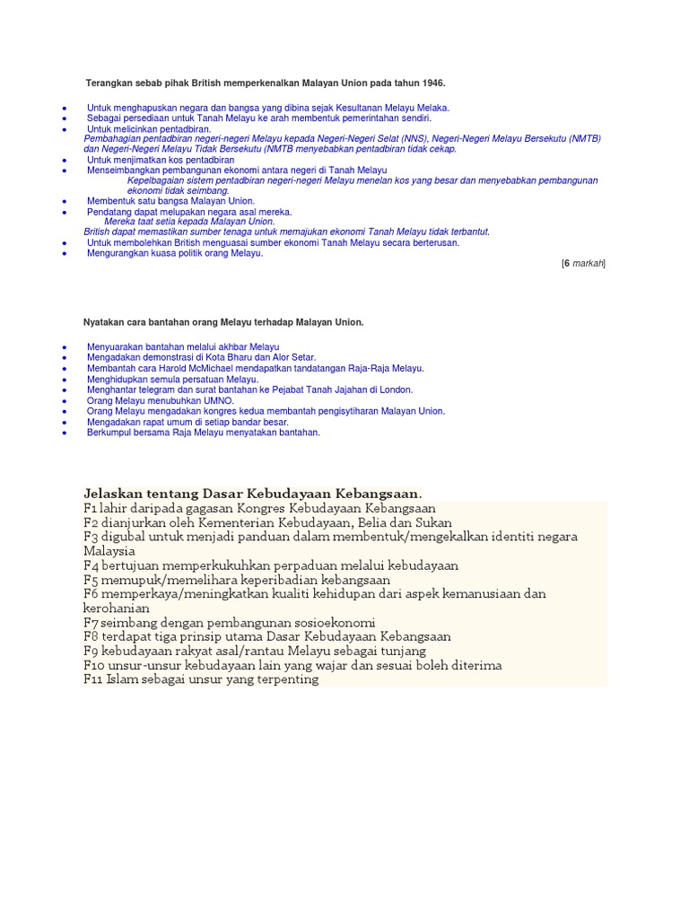 Terangkan Sebab Pihak British Memperkenalkan Malayan Union Pada Tahun 1946 Pdf